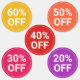 Alrededor del 60% de pegatinas de ventas en amarillo, naranja, rojo, rosa y morado con texto de personalizable para que puedas personalizar la venta.