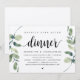 Tarjeta de invitación temática de eucalipto verde rústico moderno, guión negro, kraft (con título de tarjeta: Cena Felices para Siempre). Es perfecta para su almuerzo de boda íntimo / fiesta de celebración post boda. Agregue sus detalles en fuente / letra negra coincidente.