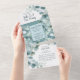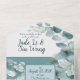 Simple Eucalyptus All in One Wedding Invite con diseño atemporal y tipografía clásica
