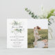 Eucalyptus Ahorra Nuestra Fecha con Tarjeta Fotográfica. Esta elegante invitación a guardar la fecha presenta la preciosa acuarela pintada a mano Eucalyptus Leaf Greenery. Buscar elementos coincidentes en la colección de vegetación de hojas de eucalipto de color de agua.