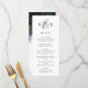 Personalice este elegante y moderno menú boda con sus monografías acompañadas de un eucalipto de color oro y verde y con un patrón de color gris dorado en la parte trasera. También están disponibles los elementos coincidentes.