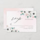 Moda moderna acuarela Eucalyptus verde y anémona floral sobre fondo rosa ondulado, con escritura de moda RSVP, elegante y elegante, gran tarjeta RSVP para boda rústico, boda botánico y boda en la playa. Ver todas las piezas coincidentes de la colección