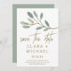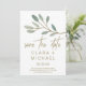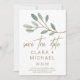 Este eucalipto con veta dorada salva la tarjeta de fecha es perfecta para una boda elegante. El diseño es sencillo y delicado, con un purpurina de oro falso que recubre las ramas de las hojas verdes de oliva. Nota: Este diseño no tiene purpurina de oro real. Es un gráfico de alta calidad hecho para parecer un shimmer dorado.