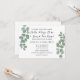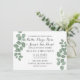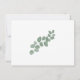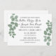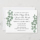 La bonita invitación incluye hojas de eucaliptos verdes y frescas sobre fondo blanco limpio tanto en la parte delantera como en la trasera. Perfecto para primavera, verano, exterior o boda con temática vegetal.