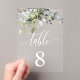 Esta elegante tarjeta acrílica minimalista de número de tabla presenta una bella escritura de escritura acompañada de un arreglo de hojas de follaje de color verde acuático. La elegante caligrafía de "tabla" no se puede cambiar, pero se puede editar el color. No puede editar/cambiar la disposición de hojas de follaje de eucalipto. Puede personalizar/personalizar la tarjeta de número de tabla y los nombres de invitados a cualquier cosa que desee.