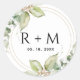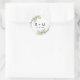 Elegante sello para sobres Eucalyptus Greenery acuático o pegatina. Área de texto para las iniciales de la pareja boda o nombre único para otros eventos. Segundo área de texto para fecha, o mensaje corto. También disponible con área circular en color verde, azul neblina o amarillo bronceado. Parte de nuestra colección "Elegant Greenery Eucalyptus Boda and Events" con una variedad de productos de coordinación disponibles.