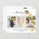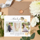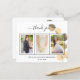 Agrega 3 de tus propias fotos y una nota de agradecimiento. Un fondo blanco clásico con texto y marco negro, eucalipto dorado. El texto: Gracias en la parte delantera y sus nombres en la parte trasera están escritos con un elegante guión con letras a mano con guiones.