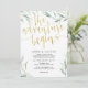 El sueño se encuentra con el rústico con esta sencilla y elegante invitación a la boda de eucalipto con una textura de Relieve metalizado de oro. Añada su propio texto a la plantilla. Esta invitación es un artículo que coincide con la gama de eucaliptos "Anne & Oliver" - mira la gama completa en nuestra tienda!