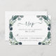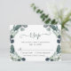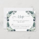 Elegantes tarjetas RSVP de bodas botánicas con hojas rústicas de eucalipto de color verde y azul polvoriento y vegetación. Las iniciales del monograma de la pareja están en la parte trasera. Póngase en contacto con el diseñador a través de Zazzle Chat o makeitaboutyoustore@gmail.com si desea modificar este diseño, en otro producto o en elementos de coordinación.