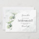 Watercolor Bridesmaid Propuesta Eucalyptus Script con un moderno diseño botánico minimalista sobre fondo blanco con tipografía popular puede editar fácilmente TIP: A continuación puedes ver otros elementos de boda y pre-boda de la preparación incluyendo invitaciones a duchas nupales, tarjetas de agradecimiento, etiquetas de champán etc colección de este diseño!