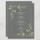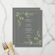 La recepción es perfecta gracias a este moderno menú de 6,5 x 8,75" con un diseño floral de acuarela botánica de eucalipto elegante. Perfecto para, pero no limitado a, esa boda de jardín y patio trasero. Parte de un conjunto de coincidencias. Vea la colección completa aquí: https://www.zazzle.com/collections/eucalyptus_botanical_sage_green_script_wedding-119437527356989510 Póngase en contacto con el diseñador para obtener más productos en este diseño, o variaciones de diseño. Copyright Elegant Invita, todos los derechos reservados.