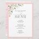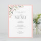 El marco de la recepción es perfecto, con un menú de 6,5 x 8,75 de diseño a la moda: un ramo floral de rosas suaves y acuarelas en tonos rosas, melocotones y blancos, con hojas botánicas verdes y exuberantes en tonos de amor y eucalipto, bordeadas por el rosa. Personaliza tus detalles acentuados con una bella caligrafía con letras a mano moderna y suave en negro. Perfecto para, pero no limitado a, esa boda de jardín y patio trasero. Parte de un conjunto de coincidencias. Vea la colección completa aquí: https://www.zazzle.com/collections/elegant_pink_watercolor_floral_wedding_suite-119378725026193431 Póngase en contacto con el diseñador para obtener productos coincidentes. Copyright Elegant Invita, todos los derechos reservados.