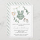 Colores de agua verde eucalipto ropa de bebé, juguetes tarjeta de invitación a la ducha de niña.