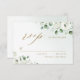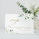 Moda moderna acuarela color blanco eucalipto floral verde y texto en color oro sobre un polvoriento fondo verde, con la escritura de moda RSVP, elegante y elegante, gran tarjeta RSVP para boda rústico, boda botánico y boda en la playa. Ver todas las piezas coincidentes de la colección