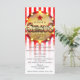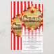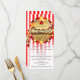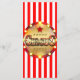 Tarjeta de menú de evento de fiesta de circo con rayas rojas blancas y doradas. Están disponibles artículos coincidentes en este diseño.