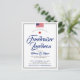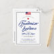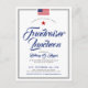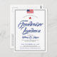 Una tarjeta postal de invitación de estilo clásico y minimalista adaptada a un evento o fiesta de estilo americano patriótico. Cuenta con una bandera estadounidense en la parte superior que se puede reemplazar con el logotipo de su empresa personal. Debajo de esto, centrado en la tarjeta está su información listada en un estilo de texto formal.