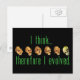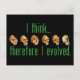 Fila de los cráneos homínidos evolucionando con "Creo, por lo tanto evolucioné". Diseño de la evolución.