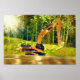 Representación artística de un enorme desalojo de Excavator cerca de un bosque. La luz del sol brilla por el metalizado. Este modelo presenta una cubeta de inclinación (pala) y a veces también se le conoce como Digger o Power Shovel. Muy buena obra de arte de nuestro amigo Skye en zazzle.com/ravenspiritprints.