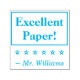 Este inspirador diseño de sellos de goma incluye el motivacional mensaje "¡Excelente papel!" y el nombre de un tutor personalizado. También tiene forma de estrella decorativa. Podría ser utilizado por un profesor o educador escolar al calificar el trabajo de un estudiante, para reconocer que un estudiante ha hecho un trabajo excepcional.