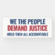 Estos artículos que incluyen la frase "Nosotros, el pueblo, exigimos justicia" son llamados poderosos a la justicia, responsabilidad e igualdad en la sociedad. Basados en el espíritu de la acción cívica y los valores democráticos, inspiran a activistas, defensores y líderes comunitarios a permanecer unidos en la demanda de una verdadera justicia para todos. Ideal para manifestaciones, protestas y marchas, encarnan la voz colectiva que lucha contra la injusticia y la desigualdad sistémica. Ya sea apoyando la reforma de la justicia penal, los derechos humanos o la equidad social, esta frase sirve como un audaz recordatorio de que la justicia es una responsabilidad compartida y una piedra angular de una democracia próspera.