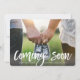 Anuncie sus grandes noticias con estilo con estas invitaciones de embarazo de moda que incluyen su foto favorita orientada al paisaje o vertical con un texto con letras blancas que dice "próximamente". Personalice su nombre y la fecha de llegada prevista.