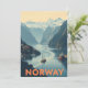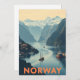 Celebre las maravillas naturales de Noruega con esta tarjeta de viaje de diseño bonito. Con sus pintorescos fiordos, sus imponentes montañas nevadas y sus encantadores pueblos costeros, esta carta capta el espíritu aventurero y sereno de Noruega. Perfecto para los amantes de los viajes o como un cálido saludo para los amantes de la naturaleza.