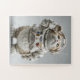 Un gato gordo y de ojos amplios se para orgullosamente en un detallado espacio blanco, con la visera arriba y la garra levantada en saludo. El fondo limpio, suave y gris, y las texturas nítidas hacen que esta sierra de jiglesias sea encantadora de construir y adorable de mostrar. Perfecto para los niños, futuros astronautas y amantes de los gatos. Elige tu tamaño y número de piezas preferidos en Zazzle.