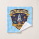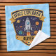 Esta toalla de lavado personalizada para niños presenta una insignia audaz y vibrante de explorador espacial. En el centro de la insignia hay un cohete de dibujos animados juguetón que vuela a través del espacio con planetas orbitando alrededor.