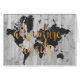 Un diseño lindo con una frase de texto dorada y un mapa negro del mundo sobre un fondo de tabla gris. Artista: Studio W