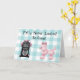 Tarjeta de cumpleaños de estilo retro, con gráficos de un caniche rosado y una rockola rosa y azul colorida sobre un fondo de gingham blanco y aquagre. El texto negro, en la parte delantera, dice: "Cincuenta nunca se parecía tan bien". Personaliza todo el texto dentro y fuera para que se ajuste a tus necesidades. Gran tarjeta de felicitación de cumpleaños número 50 para cualquier mujer.