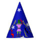 Robot espacial verde lindo chica personaje de caricatura alienígena Capitán Zoey. Deguste un divertido partido de cumpleaños único con este sonriente robot chica verde con ropa rosa y verde, botas espaciales con flores moradas y la apariencia de luces de colores 3D como accesorios en el cinturón, las bandas de muñeca y el cuello. Los gorras fiestas tienen un fondo azul con estrellas y unos rayos de colores. Divertidos gorras alienígenas de fiesta de cumpleaños para cualquier niño o chica que ame robots, naves espaciales, extraterrestres y explorar la galaxia. El diseño original de la ilustración gráfica no puede ser alterado o reproducido Copyright © 2014 , 2016 TamiraZDesigns. Todos Los Derechos Reservados. Visita mi tienda para más artículos originales: www.zazzle.com/tamirazdesigns*