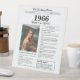 Say happy birthday to someone born in 1966 with unique Newspaper style pedestal sign, including a photo of the recipient and a collection of fun facts and world news from the year they were born. Makes a unique keepsake gift, or tabletop party decor to celebrate a milestone in elegant, personalized style. Designed to resemble a vintage newspaper in classic black and white typography.
