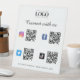 Obtén más seguidores con este genial cartel para peatones, que incluye 4 códigos QR, logotipo de negocios Personalizado y texto. Añade fácilmente tus detalles haciendo clic en la opción "personalizar".
