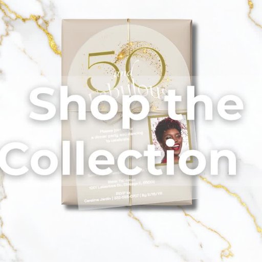 Se celebra el 50 aniversario de un hito con un cartel de peatón como parte de la decoración, que da la bienvenida a los clientes. Personalízalo con el nombre del chica de cumpleaños en una elegante caligrafía blanca y una fotografía. Las palabras "50 and Fabulous", en dorado y blanco, destacan sobre un fondo negro con efectos purpurinas. También personalizar con la fecha del evento y el nombre del lugar o cualquier otra frase breve que elija incluir. También puede eliminar los marcadores de posición si no es necesario.