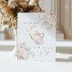 Esta seña de mesa está decorada con delicados motivos florales de color rosa, lo que crea un ambiente romántico y refinado para el evento.