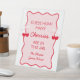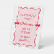 Eleva tu tema de la ducha de cerezo con este Rótulo personalizado Adivinen cuántas cerezas en la cima del peatón. Perfecto para un tema de la ducha de bebé dulce de berry o de la ducha de bebé de febrero, este juego encantador le agrega diversión y elegancia a su cereza sobre el tema de la ducha de bebé. Personalízalo para que tu evento sea verdaderamente único!