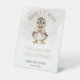 Celebrate a little one on the way with our charming "Waddle It Be?" baby shower gift table pedestal sign. Featuring an adorable gender neutral watercolor baby duck donning a sweet bow, set against a soft light brown watercolor wash, this design is as heartwarming as it is stylish. With a warm neutral palette of white, tan, and brown, it’s the perfect blend of rustic charm and playful elegance for a gender reveal or baby shower. Created by Simply Farmhouse Press.