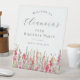 Las elegantes flores de gladiolo rosa color de agua de verano crean un hermoso borde floral al final de esta fiesta de cumpleaños, cartel de bienvenida en la mesa. Las flores de gladiolus son la flor de nacimiento de julio que significa fuerza y amor. Una moderna combinación de fuentes le da una estética moderna. Todo el texto es editable.