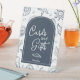 This All I Sea is Love Navy Blue Seashells Cards and Gifts Pedestal Sign brings a bold coastal touch with its backdrop of whimsical dark blue doodles—seashells, starfish, hearts, sparkles, and ocean-inspired accents. A deep navy arch with a delicate white inner line frames the cheerful “Cards and Gifts” title in a fun, modern font, followed by a sweet seashell illustration and a simple “Thank You.” Perfect for elegant beach or nautical bridal showers, this sign helps guide guests while enhancing your décor. All colors and text are editable so you can personalize every detail.