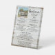 En este útil cartel de bienvenida se muestra una foto de su propiedad de alquiler vacacional. Bienvenido a su casa de alquiler vacacional, cabaña, apartamento, casa de lago, casa de playa, bed and breakfast con este signo de información. El signo de alquiler de vacaciones impreso por personalizado incluye su nombre de propiedad, dirección, nombre de negocio, red y contraseña WiFi, reglas de la casa, información de contacto y emergencia, detalles de salida y revisiones. Dé a sus huéspedes y arrendatarios una referencia fácil sobre su estancia. Moderna temática hotelera de lujo minimalista con un diseño de fondo de madera de madera de madera pintada blanca y de estilo playero, tiene el encanto y el carácter de sofisticación.