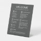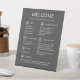 Letrero de pedestal de información para huéspedes gris moderno para alquiler de vacaciones. Una adición elegante y práctica a cualquier alquiler de vacaciones. Este letrero moderno no solo da la bienvenida a los huéspedes con un cálido recibimiento, sino que también proporciona información esencial para una estancia sin contratiempos. Desde detalles de Wi-Fi hasta reglas de la casa, todo se presenta de manera ordenada en un diseño minimalista que complementa perfectamente su hogar. Los huéspedes apreciarán la atención al detalle, lo que les hará sentir como en casa desde el momento en que lleguen. ¡Cree una impresión duradera con nuestro letrero de bienvenida!