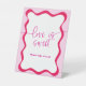 "El amor es dulce, por favor tómate un regalo" con el borde ondulado rosado caliente para una ducha de novia moderna y colorida. Diseñada con un toque contemporáneo, esta pieza decorativa le da mucha diversión a su celebración. En esta colección también se encuentran disponibles los signos de invitación coincidente, tarjetas de gabinete y otros.