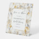 Amor Moderno en Flor Borde Floral Dorado y Blanco Bienvenida a la Despedida de Soltera. Elegancia botánica, con Amor en Flor y Despedida de Soltera en un estilo de escritura a mano. Personalice fácilmente el resto del texto con sus propios detalles. También puede cambiar los colores del texto a través de la opción personalizar más si lo desea. Un borde de flores en tonos dorados, crema, blanco y gris rodea las palabras.