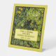 Una masa de follaje verde y blanco y rosas dorados de escalada amarilla aparecen en este cartel de un velador de bonito usado para una celebración de aniversario dorado.
