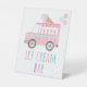 Este signo adorable será una gran adición a un fiesta con tema de helados. Enmarca el signo y muéstralo en tu mesa de helados. El diseño cuenta con un camión de helados de color acuático pintado a mano con helados y globos en colores pastel.