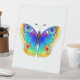 Arcoiris, realista, de dibujo artístico, colores brillantes mariposa pavo real con alas detalladas texturizadas sobre fondo blanco. Mariposa arcoiris.