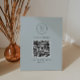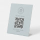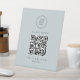 Este símbolo de pedestal del menú de código QR para empresas presenta un fondo verde sabio y un tipo de letra sans serif moderno. Agregue su propio logotipo y sitio web de menús de negocios para crear una pieza personalizado para su negocio.