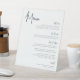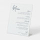 Muestra tus selecciones de menú boda o de evento en un estilo moderno con este sencillo y elegante cartel de velador con letras azul marino sobre un fondo blanco y nítido. "Menú" o la cabecera de su personalizado aparece en la parte superior en la escritura manuscrita moderna. Personalice los elementos de menú que se encuentran debajo, alineados a la derecha.