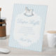 Mejore su ducha de bebé con nuestro adorable cartel de rifa de pañales en francés. Con un elegante caballo vintage de madera mecedora, junto con un sofisticado guión de caligrafía azul para bebés, este cartel le da un toque de estilo a su celebración. ¡No te pierdas esta deliciosa adición a tu decoración de eventos!