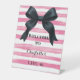Bienvenido a los huéspedes con estilo con este elegante cartel de evento peatonal con un clásico arco negro sobre fondo de rayas blancas y rosadas de moda. Perfecto para añadir un toque pulido a su entrada, mesa de regalo, barra de postres o fondo fotográfico, este cartel es totalmente editable con su nombre de evento, invitado de honor, lema o mensaje especial. Ideal para un dulce de 16 años, cumpleaños de hito, boda, ducha o cualquier celebración de lujo, este versátil signo ayuda a unir su tema maravillosamente. Fácilmente personalizable con los detalles del evento para crear una pantalla única. Los productos de fiesta de coordinación están disponibles en nuestra tienda para completar su apariencia.
